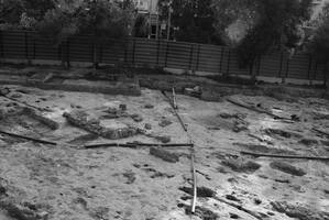 Agyroupoli, Vouliagmenis and Thermopylon St., Alimos Metro Station. Anthi Ntova (B’ ΕΠΚΑ) reports on the discovery of a Classical textile-dyeing workshop (Fig. 1). Most structures were rock-cut and only some had additional rubble walls. The excavated structures include i) numerous rock-cut pits and drains leading to the pits, ii) rectangular washeries (Fig. 2), iii) 3 rock-cut wells, iv) 1 rectangular cistern, v) numerous postholes attesting to temporary structures and vi) a rectangular building measuring 6.50x5.50 (Fig. 3). The area was identified as a textile-dyeing workshop on the basis of the large quantities of loom weights (more than 100) and spindle whorls excavated. These finds also attest to textiles being produced as well as dyed in this workshop. The actual dyes were not found but numerous grinding tools were excavated attesting to the preparation of the materials.