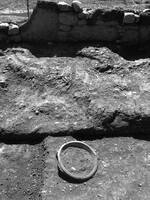 Aghios Dimitrios, Tataki 7-9 and Klearchou (O.T.373, property of M. Kanale and G. Lochaiti Co.) Eirini Anagnostopoulou (B’ ΕΠΚΑ) reports on the discovery of three walls and numerous rock-cuttings (Fig. 1). It is possible that this was a Classical quarry, because the stones used for one of the walls appear to have been extracted from the area of the cuttings (Fig. 2). Small finds include undecorated pottery sherds, few black-glazed sherds, 2 loom weights, a 4th c. B.C. lekanis (Fig. 3), a bronze coin, a bronze hoop, a seashell, a glass sherd and a marble fragment.