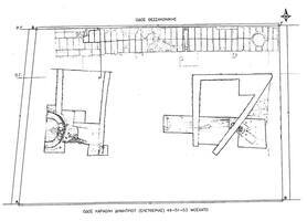 Moschato, Chrysostomou St. 117 (property of K. Kotseli). Maria Petritaki (ΚΣΤ’ ΕΠΚΑ) reports on the discovery of a 3rd-4th c. A.D. building (Figs. 1, 2). It has an E-W orientation, measures 7.40x5m., has two rooms, and was built with rubble, rooftiles and mortar. A bench was found in one room and a hearth in the other. The interior is covered with a destruction layer containing numerous roof tiles. It is thus evident that the building was roofed. Other finds from the building include plain ware sherds, fragments from beehives, glass sherds, animal bones and coins.