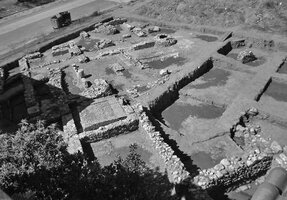 Roman pipe I ran close to and in parallel with wall 6, aligned on a NW-SE axis. Its lower section was made of rubble and mortar, with the upper of bricks alternating with mortar and the base of small square clay slabs set in mortar. Pipe II ran close to and in parallel with pipe I. It was aligned on an E-W axis, changing after a few meters to N-S. Its construction was similar to that of Pipe I. Pipe III consisted of cylindrical clay elements and ran close to and in parallel with Pipe I, as well as under wall 6. Pipe IV consisted of cylindrical clay elements, was aligned on a N-S axis and ran under wall 7.