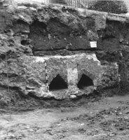 Nafplion-Synoikismos, 18 Agiou Andreou and G. Tsilikanidou Streets (Ο.Τ. 328, Property of I. Achriani and Co. Ltd). Christos Piteros (Δ'ΕΠΚΑ) reports on the discovery of the southern wall of a Venetian aqueduct preserved over a length of 5.75 m. and aligned on a NW-SE axis. In a deeper layer was found a retaining wall of 1.40 m. in height, in which there were two openings which allowed for water runoff (Fig. 1). These were dressed with poros stones and were 0.38 m. apart. The openings themselves were 0.58-60 m. wide and 0.50 m. high. Both the retaining wall and the openings were built along the bank of a small stream.