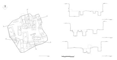 D’autres éléments du mur de rempart ont été identifiés (sondage 4), mais n’ont pas été fouillés car non menacés par les travaux modernes.