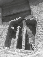 Près de la commune d’Aghioi Theodoroi, Ch. Karagiannopoulos (XXXIVe éphorie des antiquités préhistoriques et classiques) a mené en 2010 une fouille de sauvetage dans le cadre de l’élargissement de la route E65 (XΘ 79+900) et a mis au jour les vestiges d’un four de potier de plan orthogonal (dim. 3,40 x 3,10 m) et d’orientation Nord-Ouest/Sud-Est (fig. 1). Il est conservé sur une hauteur de 0,62-0,72 m. La chambre de chauffe est creusée dans la roche, ses parois sont revêtues de plusieurs couches d’argile de 0,05 m d’épaisseur, qui ont été vitrifiées par l’usage. Deux murets parallèles en briques soutiennent la sole. A l’intérieur du four, on a trouvé de la terre, des amas d’argile crue et d’argile cuite, des fragments de briques et des fragments de tuiles laconiennes. À l’extérieur du four, on a aussi trouvé des tuiles de type laconien, probablement produites sur place. En l’absence de mobilier, c’est le type de four qui permet de dater cette découverte de la fin de l’époque hellénistique, probablement au IIe s. av. J.-C.