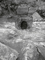 La fouille du secteur I a livré une thékè taillée dans la roche, dont l’ouverture était obturée par une dalle : elle comportait une hydrie cinéraire d’un type similaire aux hydries de Hadra. Les os à l’intérieur de l’hydrie appartenaient à un adulte, à un enfant et à un nourrisson. Les os de l’adulte avaient été brûlés. On a également recueilli des fleurs en argile provenant d’une couronne de lierre. Au-dessus de l’ouverture, deux blocs posés de chant devaient appartenir à un dispositif funéraire (fig. 1). La thékè a été datée du début du IIIe s. av. J.-C.