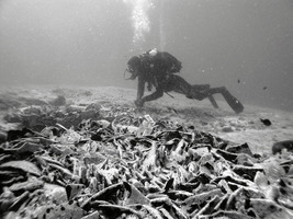 Du côté Sud de l’îlot, à 60 m de la côte, on a repéré une épave située à une profondeur de 28-45 m. La concentration de céramique est constituée en surface d’amphores, qui appartiennent au type des amphores africaines IIA, daté de la fin du IIe-première moitié du IIIe s. apr. J.-C.