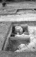 Sur le site B, à peu de distance du site A, la fouille du portique et celle de l’édifice orthogonal s’est poursuivie et le tambour inférieur d’une colonne ionique avec sa base a été dégagé (fig. 1-2). De nombreux objets ont été recueillis : des éléments architecturaux en argile, des sima et des tuiles à antéfixes qui appartiennent vraisemblablement à l’édifice orthogonal, de la céramique commune, des objets en bronze et en fer et deux monnaies de bronze.