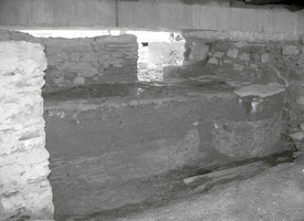 Fig. 5/ La dépendance de l’église. Sous le pavement on aperçoit la tombe à voûte avec la structure maçonnée et la boîte de marbre