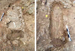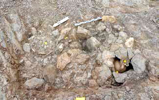 Fig. 2/ Fosse contenant deux vases cinéraires (dont une amphore) dans des thékai sommaires en moellons