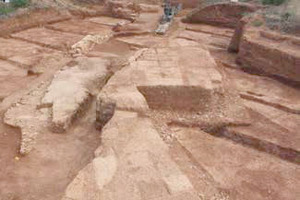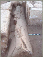 Fig. 3/ Anciennes tranchées de viticulture passant sous les fondations du rempart Sud de Cassandreia