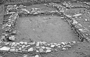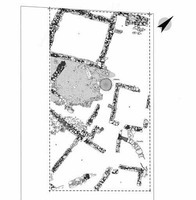On a dégagé une pièce carrée appartenant à un plus grand édifice et à laquelle se seraient rajoutés des espaces auxiliaires des côtés Nord et Sud (fig. 2). Vers l’Est, on a découvert une fosse circulaire contenant de la céramique, des figurines, des coquillages, des os et des résidus brûlés. Vers le Sud, on a retrouvé un autre bâtiment dont on a repéré deux espaces communiquant entre eux par une porte ; dans l’un, on a découvert un petit dispositif circulaire en pierre qui a pu servir de support d’un vase de stockage. Les deux espaces s’étendent encore vers l’Est. Les murs de ces édifices étaient construits en moellons bruts pour les deux faces avec un remplissage d’argile et de cailloux ; quant aux sols conservés, ils consistent de terre battue sur un substrat de petits cailloux. On a également mis au jour, sur env. 4 m au total, un réseau de canalisations consistant en deux rangées de moellons bruts pour les parois, avec une couverture de dalles de schiste, qui constituerait un système d’égouts pour les/évacuation des eaux usées des bâtiments (fig. 3). Si les diverses pièces ont été retrouvées quasiment vides, on est vraisemblablement en présence de parties d’habitations, occupées entre l’HR IIIB et l’HR IIIC, tandis que l’existence de phases plus anciennes n’est pas exclue. Il s’agirait au total d’un quartier dense de l’habitat, dont les édifices maintiennent l’orientation observée dans les autres ensembles explorés et témoignent de l’expansion de celui-ci vers l’Est à sa période d’apogée (HR IIIB) (fig. 4). La fouille a livré de la céramique commune (grands pithoi, marmites tripodes), mais aussi des gobelets, skyphoi, cratères, kylikès, kyathoi ou lékanides caractéristiques de l’HR IIB2-IIIC, figurines du type Φ et zoomorphes, fusaïoles en argile ou stéatite, outils en pierre, une pince en bronze ; près du conduit, on aurait également retrouvé les fragments d’un bain.