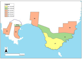 Dans la région la plus au Sud de l’Eubée, une équipe menée par J. P. Crielaard (VU University Amsterdam, Institut Néerlandais à Athènes) a poursuivi en 2017 un projet de prospection débuté en 2015, appelé « The sea and land routes of southern Euboia ca. 4000- 1 BC » (SESLR project). La mission de 2017 a consisté en une reconnaissance de terrain d’éléments détectés par prospection aérienne ou satellite et en des prospections de surface ciblées dans des zones spécifiques telles que des routes, chemins et installations portuaires. Ces travaux ont porté principalement dans la partie orientale du secteur A2 (fig. 1), c’est-à-dire la zone côtière de Kalamos-Kastri-Livadi et son arrière-pays, ainsi qu’une partie de la région centrale entre Bouros et Kastri. L’objectif était d’examiner l’occupation des alentours de la baie de Kastri (l’ancienne Geraistos) et l’existence de réseaux routiers dans cette région.