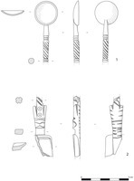- les matières premières employées pour la fabrication de ces objets sont majoritairement de l’os (80% des objets identifiables), mais aussi du bois de cerf, de la coquille et peut-être de l’ivoire.