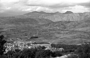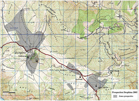 - une opération de prospection conduite par D. Rousset a eu lieu sur le plateau de Desphina (fig. 1-2), en collaboration avec l’Éphorie de Delphes et l’Institut des Sciences et Techniques de l’Antiquité de Besançon (ISTA – UMR 6048). Une loi de Delphes du IIe s. apr. J.-C. avait montré que les Delphiens procédèrent à l’époque impériale à deux lotissements successifs de terres et quelques indices contenus dans l’inscription avaient fait supposer que la région partagée pouvait être le plateau de Desphina. Il s’agissait en l’occurrence de contrôler sur le terrain cette déduction tirée du texte. L’analyse de cartes topographiques (1/50 000 et 1/5000) et de photographies satellitaires et aériennes (1/15 000) a d’abord permis de repérer des axes dans les parcellaires agraires et de distinguer plusieurs trames orthogonales qui pouvaient être les traces fossilisées du lotissement du IIe s. apr. J.-C. Sur le terrain, toutefois, il n’a pas été possible de reconnaître au sol un partage de tout ou partie de la région en lots réguliers : seule l’analyse à venir des distances entre les 307 points levés pourra éventuellement confirmer ou infirmer la réalité d’un lotissement de la région. On n’a pas davantage repéré de vestiges qui puissent être considérés comme sûrement antiques et être mis en relation avec un lotissement régulier des terres, la seule marque d’un bornage qui puisse éventuellement être antérieur à l’époque contemporaine étant une lettre delta gravée sur un rocher. En revanche, deux sites jusqu’ici inconnus ont été identifiés.