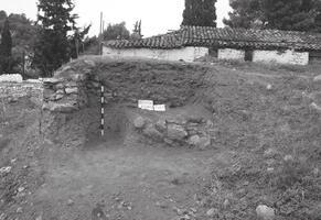 Acropolis of Asine. Christos Piteros (Δ’ΕΠΚΑ) reports on a trial excavation at the SE boundary of the excavated site of the lower acropolis of Asine to investigate the surviving upper archaeological strata of the acropolis. A section of the foundations of Wall no. 1 (S-N) was uncovered (Fig. 1). The foundation apparently continued further south, but was destroyed by excavations of the Swedish Archaeological Mission, which proceeded to deeper strata. The foundation of upper Wall no. 1 was found to continue further north for a distance of 8.7 m, as the SW corner of the more deeply founded cells. Shells and roof tiles date the foundations to the 2nd Venetian period. A kiln from the same time was found W of the acropolis. The foundations correspond to a rectangular building with S-N orientation. Upon deeper excavation another section of foundation was found (no.2) constructed from stones and earth, running W-E. Based on the pottery, Wall 2 dates to 5-7th c. AD. The oldest small three-aisled church, whose foundations lie beneath and to the north of the church of Panagia, also dates to this period. Considering that, in addition to the three-aisled church, at that time a great reconstruction of the walls on the north and north-east sides was made and a new Byzantine wall was built inside the western Hellenistic walls that had collapsed, a reconstruction of the main northern gate of the Acropolis and two new small gates were opened in the northwest, the acropolis of Asine was critical to the wider region.