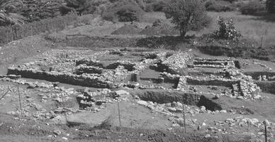 Hooks and needles for sewing nets show that the main occupation of the inhabitants was fishing. Inside the houses, burials (most empty) were found under the floors. Underneath the N wall of a room with entrance to the E, a tile tomb (oriented NE) was found. The burial was of a female and contained 4 bronze coins and a bronze earring. In the vicinity 5 child burials were found with poor grave goods (bone pins, small bronze artefacts, clay spools). A short distance to the SW and closer to the coast, the ruins of a large building, possibly of public nature, came to light.