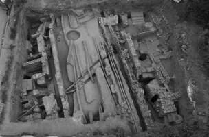 Along the street and built drains, spaces with floors and hearths, and also wells, small cisterns and channels were discovered. The successive building phases and the plans of this space cannot be reconstructed due to their fragmentary condition.