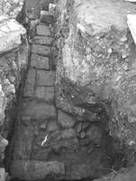 Neapolis, Dimokratias Street (property of G. Salavouta). Afroditi Maltezou (Ε ΕΠΚΑ) reports that architectural remains covered the whole property and are dated from the Hellenistic to Late Roman/Early Byzantine period (Fig 1.). In the W part of the property, part of a bath complex of the Late/Early Byzantine period with 2 building phases close to each other. Niche 2 and Wall 6 belong to the 1st phase. On the N side of Niche 2, an opening was found with 2 stairways descending into a room (Fig. 2). The 2nd building phase of the bath was founded on top of the first and 3 areas have been revealed (Area 1, Area 2, and Niche 1). They constitute the NE section of the bath; the rest continues beyond the excavated property. In Area 1, the inner side of the walls had marble revetments. There were 2 phases in its floor. From Area 1, conical protrusions of tegulae mammatae were recovered. Marble revetments were also collected from the other walls of the spaces of the bath. The floor in these spaces were also made of marble. It is not clear in which part of the bath the excavated area belongs because of the fragmentary nature of the remains. The find of the projections of tegulae mammatae in Area 1 suggest that this is the location of the Caldarium. Niche 1 was one of the bath tubes of the bath and Niche 2 had the same use in the 1st phase.
