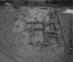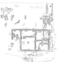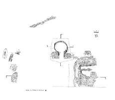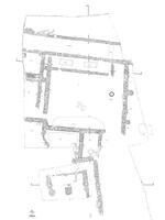The street to the N of the building, greatest width 2.8 m with E-W orientation, is made of sandy earth and ground tiles. This was perhaps a secondary artery and used perhaps as access to the farmstead. A quadrilateral space was identified S of the farmstead. In the centre of it, a built construction made of unworked stones was found and exactly to the N of it, a small column of conglomerate stone was found. This space was a late addition to the farmstead.