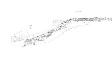 At KM 35+255 (Kopanitsa Vordonias), part of an aqueduct was found (Fig. 1). The length uncovered is 43.5 m and the width fluctuates from 1.5-1.8 m. The main route was N-S, but at some point it turns to the SE. A second section of the same aqueduct was found 76 m to the S, but it was not investigated. The horizontal cover of big stones shows wheel ruts of N-S orientation. This water channel was part of the “Hadrianic” aqueduct. The beginning of the aqueduct is at Vivari-Vordonias on the E bank of the Eurotas river.