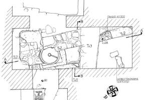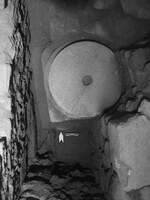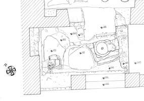 Finally, part of a Byzantine silo and more walls were found on the ground floor of the building (Fig 7). A Doric column capital had been used as building material for one of these walls, which dates to post-Byzantine times (Fig. 8).