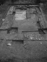 Kato Achaia, Fleming St (O.T. 94, property of P. Oikonomopoulos). Vasiliki Tsaknaki (ΣΤ ΕΠΚΑ) reports that in the S part of the property an ancient road with E-W orientation was found (8 m visible with width 2.40 m) (Figs. 1-2). There is a second road surface at a deeper level. Along the N side of the road a line of quadrangular and triangular sandstones defining the pavement were found. The limit of the pavement to the N is destroyed by a channel that has the same orientation as the pavement. To the N of the pavement along the W of the property a mosaic floor was discovered (Floor 1). The floor was destroyed by Channel 2 that is similar to the first channel and has an E-W direction. Another channel (Channel 3) extends along the E side of the floor. The channels are probably foundation trenches of ancient walls. Three metres to the N of the pavement and in contact with Channel 3, Floor 2 was discovered.