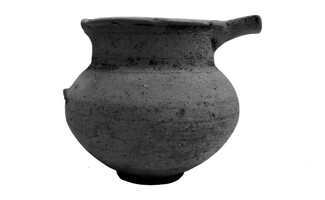 Grave 2 (Fig. 2): 2.25 m to the E of grave 1. 2.70 m of the dromos was revealed. A dry wall blocked the entrance of the grave and the chamber has a square plan and gabled roof,at the centre of which there is a shallow oculus (υποθόλιο). To the E and W of the chamber there were around 6 burials with N-S orientation. The bodies were in a contracted position. The finds are poor, just 3 pots: 2 are handleless pithoi (Fig. 3-4) of LH IIB-IIIA 1 date. The third pot is a hole-mouthed jar of FS 104 type and dates to the LH IIB and is probably of a local workshop (Fig. 5).