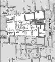 Work concentrated on 7 rooms and the courtyard of a Byz house, in which successive beaten earth floors were removed to expose the foundation trenches of the original walls (Fig. 2). The house consists of 9 rooms and a central courtyard. Two rooms flank a corridor leading from the entrance on Lechaion Road South to the court. The remainder flank the courtyard. The complex was supplied with water from a well in the court. On the S side of the courtyard, a stair ascended to a veranda and upper storey over the SE 3 rooms. The house was built in the 2nd half of the 11th Ct and remained occupied for 2 centuries. In the 13th Ct, the W range of rooms was assimilated into a property standing to the W, while the E part of the house continued in independent use. Three spaces produced significant metal finds (Fig. 3). The SW room, a semi-basement, had an assemblage of Fr tools including a scythe, a knife, an axe-hammer and a spear point. Beneath the stair ascending to the 2nd storey were a Byz ladle or lamp, an adze-hammer and a keyhole plaque. Outside and to the NW was a dump of iron door fittings, including parts of lock mechanisms and keyhole plaques.