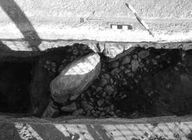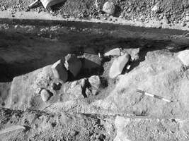 Finally, two structures were revealed. The first consists of two rooms; one rectangular and one oval-shaped (Fig. 6). This structure contained pottery sherds, shells, obsidian tools, stone tools, a hand-axe and a terracotta spindle-whorl, and its floor was made with carefully placed rubble (Fig. 7). The second structure (Fig. 8), which dates to the Bronze Age, contained obsidian flakes and animal bones.