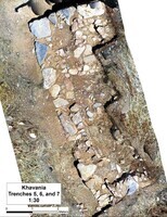 Several notable architectural features other than walls were also identified in the Ephoriea trenches. These include a pavement (T02.3) on the eastern side of walls T02.2 and T02.4; two sections of pavers (T02.3 and T04.2), the former perhaps belonging to a bench or step, the later to a paved vestibule or interior courtyard; a series of two broad risers (T08.1), which may be part of the settlement’s street-system; another series of risers (T05.3), which may be part of an interior staircase; and two well-constructed monolithic thresholds (T04.1 and T08.2). Mention should also be made of a possible fortification wall located on the steep east slope of the peninsula (W28, W29).