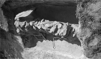The chamber tomb was severely damaged although two phases of use were identified. The final phase included two separate extended burials in the northern and southern sides of the chamber (Fig. 1). Both were poorly preserved, along with their respective grave goods, probably dated to Late Helladic IIIC (12th c. B.C.). The earlier phase included three parallel pits aligned on an E-W axis and covered by rough slabs. In the first pit was a single female burial in extended position, while in the second were two in contracted position with their heads at opposite ends. Finds associated with one of the bodies included a small three-handled amphora, while the second was associated with bronze blade. The third pit contained a single burial in extended position, with very few bones and grave goods. This grave may also be associated with some pottery vessels found nearby. This earlier phase of use probably took place during Late Helladic IIIA (14th c. BC). At the rear of the chamber was a burial niche containing a skeleton in extended position accompanied by a single amphora and the bones of secondary burials.