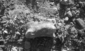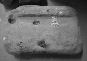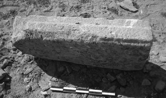 The presence of a marble pivot stone led to the discovery of an apsidal building (10.0x4.50 m.) aligned on an E-W axis (Fig. 5). The building was identified as a small church, preserved only as foundations, although its superstructure would have been built with bricks, tiles and stones. Next to the church were architectural remains belonging to two ancient buildings possibly dated to the Byzantine period (Fig. 6), while a few meters to the west of these was collected prehistoric pottery.