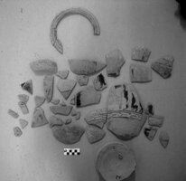 Amongst the finds was a burial pithos of 1.90 m. in length, located next to a circular clay construction, probably a kiln. Also found was a concentration of 45 sherds belonging to a large red-figured pot detailing a funeral scene. The pot derived from an area where two hut-graves and one pit burial were excavated, part of a larger Christian cemetery.