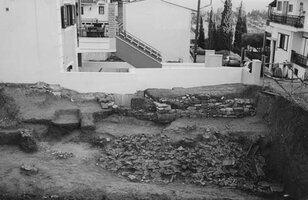 Kato Achaia, Vigla, side road Lechouriti and P. Mela, O.T. 133 (property of K.A. Rapti). Adamantia Vasilogamvrou and Vasiliki Tsaknaki (ΣΤ’ ΕΠΚΑ) report on the discovery of part of the northern segment of the Hellenistic fortification wall of ancient Dyme (Fig. 1). Aligned on an E-W axis, it measured 4.50 m. in length and was 2.90 m. in width. Part of the brick upper part was preserved while a thick layer of tiles was unearthed along its southern side.