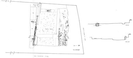 Kato Achaia, 28 Agiou Ioannou Street, Ο.Τ. 268 (property of M. Gotsoulia). Vasiliki Tsaknaki (ΣΤ’ ΕΠΚΑ) reports on the discovery of an ancient road running in an E-W direction. It was preserved to a length of 14 m. and was 7.50 m. wide. The road surface consisted of successive layers and was 0.30 m. in thickness. Three rooms were identified along its southern side while to the north was part of a pavement of 1.65 m (Fig. 1). in width, made of various types of stones, tile fragments, smaller stones and beaten earth.
