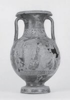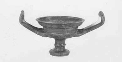 Karaiika. Vasileios Argyropoulos (ΣΤ’ ΕΠΚΑ) reports on the discovery of a grave dated to the Classical period, sunk into the soft bedrock and covered with a large schist slab. It contained an adult male burial in the extended position. The head had been adorned with a gold plated wreath. Other grave goods included two pelikes (one Red-figure and the other black-glazed) (Fig. 1), a kylix (Fig. 2), a handless skyphidion, an iron strigil, a gold earring and a silver coin. Based on the pottery the burial was attributed to the 4th c. BC.