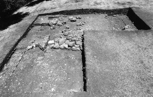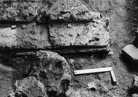 Excavation at Gremoulias, Monastery of Agioi Theodoroi in Chlemos, Kalavryta. Georgia Alexopoulou (ΣΤ’ΕΠΚΑ) reports on further excavations at the site where the foundations of an Archaic peripteros temple made of limestone blocks were overlain by a Doric peripteral temple made of poros stone. Work was concentrated in the western part of the cella and eastern parts of the temple (Figs. 1, 2). The cella consisted of an elongated room, 6.60 m. in exterior width, made of poros blocks constructed in an irregular isodomic system (Fig 3). The opisthodomos was not located. To the west of the cella were many marble tile fragments of the Corinthian style, while marble roof tiles were also used in the early Archaic temple. The poros blocks were covered by a thin layer of lime plaster (stucco) consisting of several coats, while the blocks were joined by iron ties in the shape of a double T and set with lead.