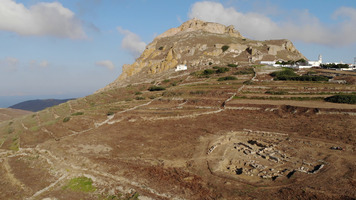 À Ténos, N. Kourou (Université d’Athènes) a poursuivi en 2018 ses travaux sur le site antique de Xombourgo, particulièrement dans la zone de l’atelier de métallurgie mis au jour en 2017 dans l’espace de la nécropole de l’époque classique, à l’Est de la colline (fig. 1-2).