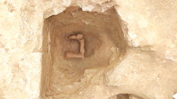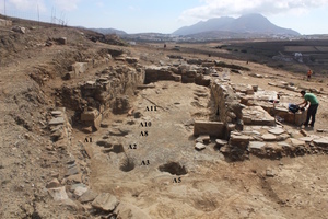 L’atelier date par conséquent de l’époque archaïque (ou avant) et n’a plus été en usage après le début du Ve s. av. J.-C., date à laquelle apparaissent les premières tombes sur la terrasse inférieure. La nécropole s’est étendue ultérieurement sur la terrasse supérieure, en achevant ainsi l’abandon de l’atelier et en le recouvrant. Il y a très peu d’éléments attestant l’usage de cet espace à une période plus ancienne : quelques tessons seulement datant des VIe et VIIe s. Il n’y a aucun mobilier de l’Age du Bronze.