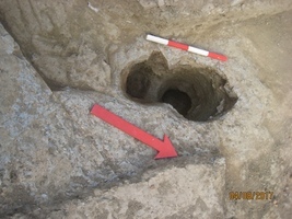 La fosse 5 était recouverte d’une épaisse couche d’argile, devenue très dure avec la cuisson. Elle comportait de nombreuses scories. À côté de son embouchure, se trouvait une deuxième fosse peu profonde avec un revêtement semi-circulaire qui servait peut-être à poser un ustensile.