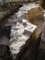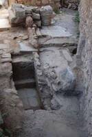 Excavation was conducted between the levels of the clay floor (also containing high amounts of plaster, and located in 2001) and the stone foundations. Many fragments of plaster and mortar were removed, and also metal objects including nails, and a bronze coin that was so poorly preserved that it could not be dated any more precisely than to the Venetian period. A marble colonnade was also found below the floor: a hole through its centre suggests it could have been used as a fountain. Pottery from the mihrab dated to the end of the eleventh century / start of the twelfth century AD (green and brown painted ware) and also between the seventh and fourteenth centuries AD (late sgraffito ware). A few sherds were found dating to the Ottoman period. Small pieces of Byzantine fresco were found covering the surface of the bricks on the E and N walls of the Fethiye Mosque, and also W of the mihrab.