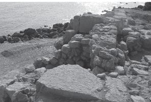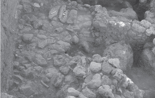 The situation at the Northeastern part of the settlement is different; three elongated strong walls, which were built out of large limestone blocks were discovered (Fig. 9). Among these, an older wall was found. They potentially were strong retaining walls that defined the Minoan settlement towards the N. On the eastern part of them, parts of walls were found, signifying the existence of at least five rooms. In their interior, the characteristic deposit with coarse pottery of utilitarian use, brick fragments, calcareous soil and plaster was found.