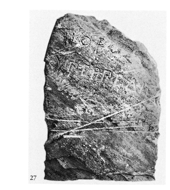 En 1998, au pied du versant Nord de la colline de Merkati, on a repéré et nettoyé une laverie de minerai qui est en très bon état (16 x 8,35 m). A 100 m de là environ, près du sanctuaire qui avait été découvert dans la propriété Roma, on a trouvé une stèle fragmentaire inscrite, ΗΟΡΟΣ ΥΠΕΡΠΕΔΙΟ (fig. 27), datant du IVe s. av. J.-C. Le mot υπέρπεδον était peut-être descriptif du site ou était le toponyme de la colline. Ibid. [ead.].