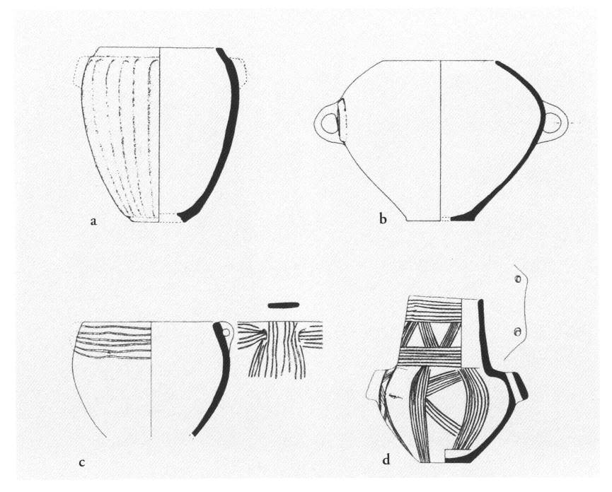 En 2003 et 2004, à Tsépi, les travaux de construction d'une nouvelle toiture de protection au-dessus de la nécropole HA a empêché M. Pantélidou-Gofa de poursuivre les fouilles ; les travaux ont été limités à la restauration et à l'étude du mobilier céramique provenant de la fosse-dépotoir fouillée en 1999-2000 (v. BCH 127 [2003] Chron., p. 718), mobilier qui servit aux cérémonies funéraires. Des remarques intéressantes ont été faites : 1) l'amphorisque se rencontre très souvent, sous plusieurs variantes morphologiques et dimensionnelles ; certains vases plus grands ont la même forme que l'amphorisque et ne s'en distinguent que par la forme et la position des anses ; ces vases, à usage domestique, furent fabriqués très tôt (HA I) et sont sans doute des produits locaux ; 2) la production céramique locale a pu être distinguée grâce à certaines particularités techniques, comme le décor plastique (nervures verticales, volutes de part et d'autre des anses) (fig. 29, a-b) et le décor incisé ; en ce qui concerne ce dernier on a pu remarquer que le décor est peu soigné sur les vases domestiques (bols profonds) (fig. 29, c), alors qu'il est plus riche et plus soigné sur les amphorisques (fig. 29, d) ; dans tous les cas la syntaxe du décor est la même que sur les vases cycladiques mais sous une forme plus simple ; 3) les grandes jarres (haut. 0,40-0,50 m), dont chacune correspond à un lot de la fosse-dépotoir (v. BCH 125 [2001] Chron., p. 801), ne portent pas de traces de feu comme le reste du mobilier ; on suppose donc qu'elles furent brisées puis jetées dans la fosse après la fin de la cérémonie, ce qui suggère qu'elles ne faisaient pas partie des offrandes faites au défunt, mais servirent uniquement au transport de leur contenu.
