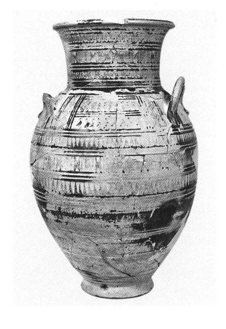 En 1998, au lieu-dit Moulki , au Nord des raffineries d'Aspropyrgos, une série de tombes ont été mises au jour à l'occasion des mêmes travaux. Il s'agit d'un groupe de quatre tombes à tuiles s'échelonnant entre l'époque classique et l'époque romaine et, à 800 m de celles-ci, d'une ciste contenant notamment une amphore cinéraire géométrique (IXe s.) (fig. 34) ; dans la même région, on a aussi trouvé deux vases funéraires : une amphore du début du Ve s. et une hydrie du VIIe s. av. J.-C. Ibid., p. 77 [ead.].