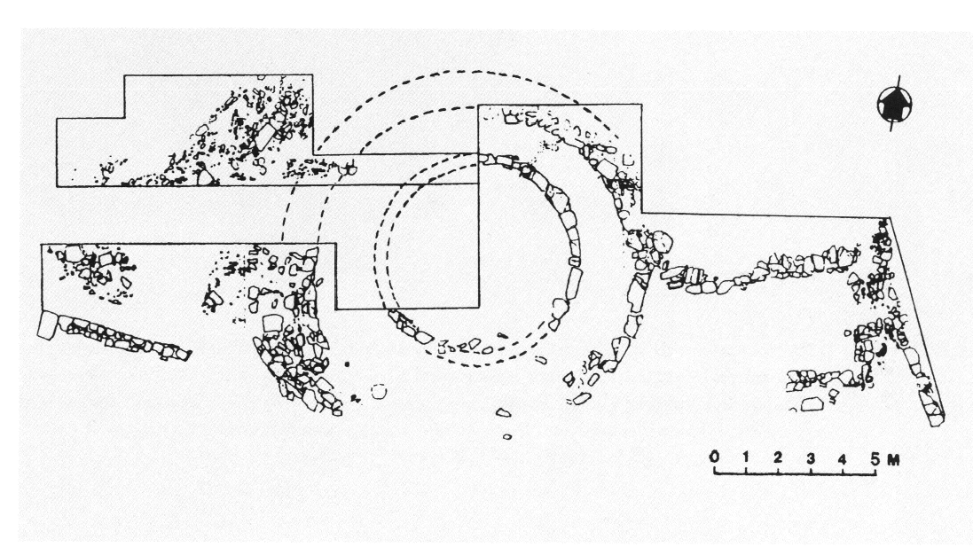 En complément aux informations sur la fouille systématique menée, depuis 1995, au lieu-dit Dourouti (campus universitaire de Jannina) par le Service archéologique en collaboration avec l'université de Jannina (K. Gravani), dont les résultats ont déjà été résumés dans BCH 122 (1998) Chron., p. 803, nous reproduisons ici le plan de la construction circulaire (fig. 82) fouillée lors du creusement du canal de drainage (complexe Nord) ; à l'intérieur du couloir délimité par les deux murs concentriques, on a repéré des restes de feu et recueilli une poterie très variée : fragments de grands vases (pithoi, amphores), tessons à vernis noir, céramique non tournée de type préhistorique, vases importés d'époque géométrique et archaïque ; on y a aussi recueilli un grand nombre de tuiles et de poids de métier, ainsi que des objets métalliques et des figurines féminines en terre cuite (v. ibid.). Le complexe Sud, sur le versant de la colline de Dourouti, comprenait les restes d'une construction à murs courbes, un pavement circulaire (diam. 15 m) et le bâtiment rectangulaire (8 x 7 m) identifié comme un sanctuaire de Déméter (v. ibid.). AD 54 (1999) [2005] B'1, p. 482-48 4 [I. Andréou].