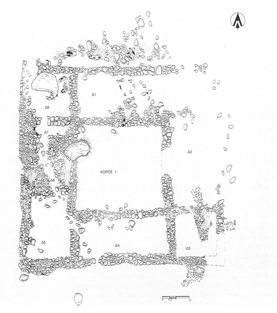 En 1998, au lieu-dit Pontika (km 270,300), des travaux de télécommunications ont amené la découverte d'un bâtiment de plan rectangulaire (15,25 x 13,80 m), sans doute une ferme, organisé autour d'une cour sur laquelle donnent sept pièces (fig. 121), qui a livré de nombreux fragments de céramique commune, des objets de fer ou de plomb, des fragments de vases en verre, des monnaies de bronze de l'époque de Trajan. Le bâtiment a été en usage entre la fin de l'époque hellénistique et l'époque romaine. AD 53 (1998) [2004] B'2, p. 434-436 [V. Rontiri].