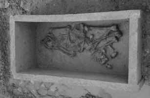 Five burials were pithos burials, comprising local pointed-toe Corfu vessels. One of the pithoi continued two burials (Fig. 2). The orientation of three pithoi was SW-NE, and the other two were EW. All burials belonged to adults, except for the double-burial, of which one of the individuals was a child.