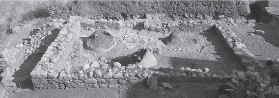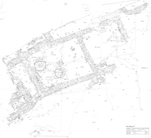 At the north end of the property, the investigation revealed an arched-building. The plan of the complex was not excavated completely. In total, 37 walls were discovered, defining 20 spaces, 10 of which came to light with a complete plan. The settlement occupies an excavated area of 400 square meters. Due to the continuous life duration and consecutive use of the space, most of the finds exhibit strong evidence of disturbance with a lack of sequence in stratigraphy.