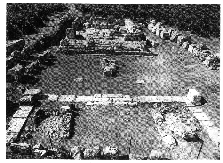 En 2000 et 2001, T. Mattern (université de Marburg) a nettoyé le temple hellénistique d'Héraclès (fig. 1), situé à l'extérieur de la ville ancienne, qui avait été fouillé en 1910 par A. Frickenhaus. En 2002, il a entrepris un nouveau projet de recherche à Kléonai, en collaboration avec J. Marchand et la IVe Éphorie (dirigée par A. Mantis et représentée par E. Pappi). Le projet est principalement centré sur le temple dit d'Athéna situé sur la colline Est, dont Frickenhaus ne s'était occupé que brièvement en 1910. Cet édifice, qui marquait le territoire, était visible depuis Corinthe et représentait sûrement un élément important de la structure urbaine de Kléonai. Lors du nettoyage de la zone, on a découvert les vestiges d'un édifice mesurant 25 x 10 m, dont on a nettoyé la partie Nord. Les fondations étaient construites avec du matériel de remploi. La technique de construction, relativement peu soignée, incite à le dater d'époque tardive. Le matériel de remploi provient de deux édifices distincts : un dorique d'époque classique tardive (auquel appartiennent des blocs à sept métopes-triglyphes, une architrave, et probablement un chapiteau) et un autre ionique d'époque hellénistique (auquel appartiennent un tambour de colonne et trois de demi-colonnes).