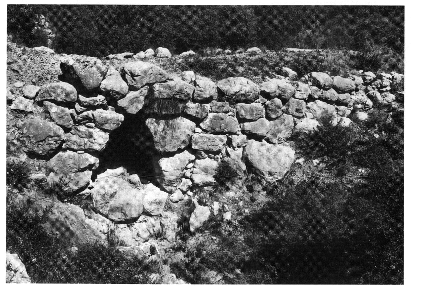 2) le deuxième se trouve à la hauteur du km 13, à ca 300 m au Nord de la route (au lieu-dit Asprochoma-Galousi) ; il mesure 14 m de long, 5 m de large et 3,40 m de haut (fig. 1) ;